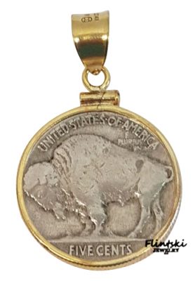 US Buffalo Nickel Coin Pendant 1/20th 14k Yellow Gold Filled
