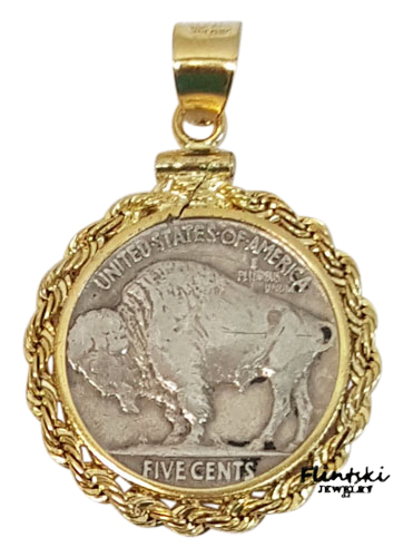 This 1/20th 14k Gold Filled Coin Pendant comes complete with a beautiful US Indian Head Buffalo Nickel.